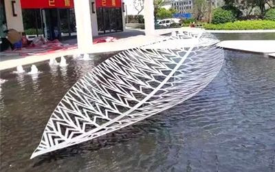 應(yīng)用于水景之中的不銹鋼雕塑,包括但不限于人物、動(dòng)物植物、景觀擺件等,常見如貝殼、海螺、海豚、魚、仙鶴、天鵝、青蛙、小鹿、荷花、蓮花、海浪浪花、水滴、假山、鏤空球、圓環(huán)等等。